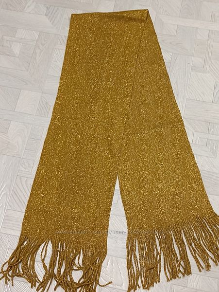 Шарф женский, б/у, мелкая вязка, с люрексом.Тянется немного в ширину. Бирка с составом отсутствует.
