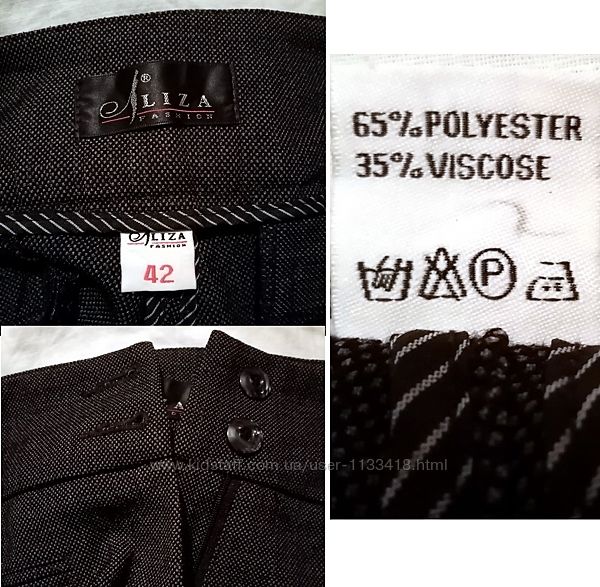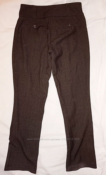 Зі щільної, проте м´якої тканини. Сезон - весна/осінь. На 44 розмір та зріст 165-172 см. Колір дуже темно-сірий. Кишень немає. Тканина зовсім трішки тягнеться.Заміри в см : ПОТ 39 (посадка середня), ПОБ 50 (стегна max 100 см), довжина вся/крокова 101/77.
