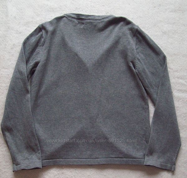 Предлагаю серую трикотажную кофту кардиган на пуговицах, от TU. 100% хлопок. Б/у аккуратно, состояние очень хорошее, смотрите фото.Размер указан на 9 лет, рост 134 см. Длина 52 см, ширина плеч 34 см, длина рукава 52 см, ширина груди подмышками 41 см.