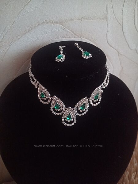 Потрясающе красивый набор бижутерии под серебро с австрийскими кристаллами изумрудного цвета и белыми стразами. Длина сережек-3 см. Длина ожерелья-32см+12см дополнительные звенья.Предложения Premium магазинов