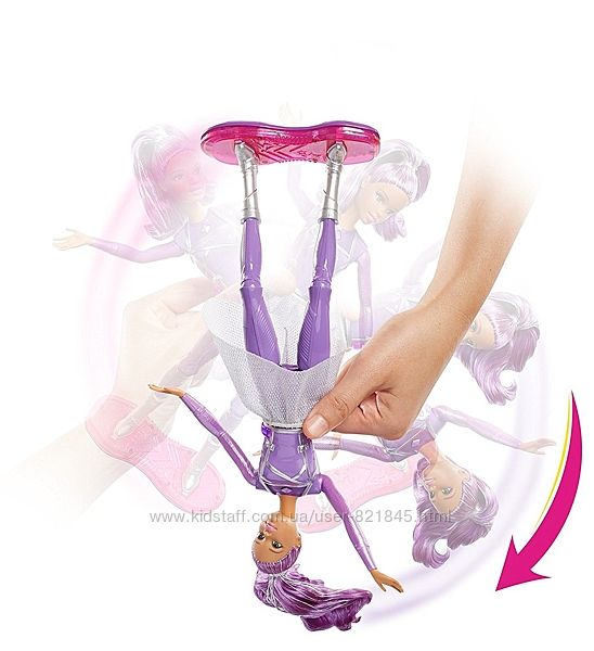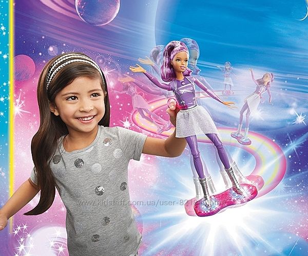 Оригінал, привезено із США. Космічні пригоди разом з Барбі і її космобордом! 5 різних мелодій і 3 різних кольори світла, які змінюються разом з рухом ляльки. Спеціальний прилад, що дозволяє ляльці крутитись на 360 градусів!