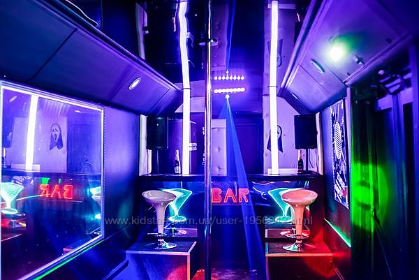 мест до 30, полное музыкальное сопровождение, ведение караоке и база более 40000 песен, разработка индивидуального маршрута с остановками и экскурсией, танцпол с мега-лазерным шоу, стробоскопами и супер-звуком, Buble-Show(шоу мыльных пузырей), бар и ChillOut-zone, зона отдыха, DJ-бармен, небесные фонарикизаказ на 1 час — 6500 грн