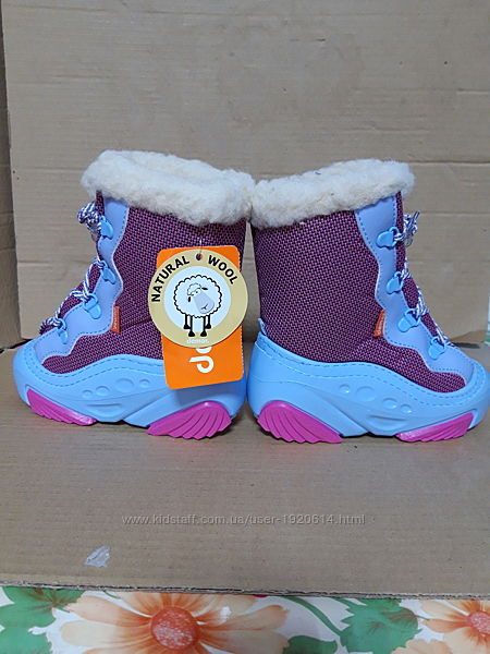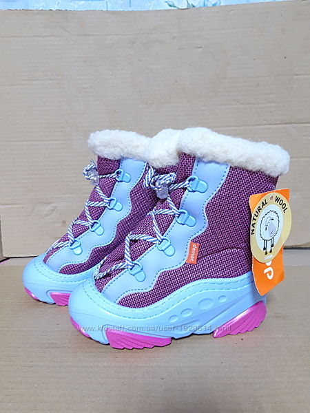Продам зимние сапоги ТМ DemarРозового цвета с голубой подошвой и вставками