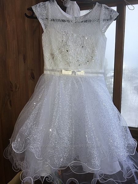 Праздничное платье. Очень красивое. Одето один раз. Пояс 27 см. Можно стянуть шнуровкой. Длина 78 см.Другие объявления продавца