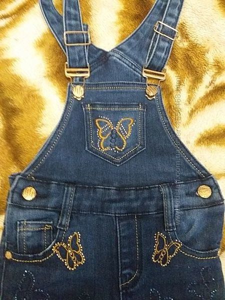 Продам джинсовий комбінезон для дівчинки, б/в (у відмінному стані, хороша фурнітура, без потертостей, дірок та інших пошкоджень), вказано зріст 92 см (ми одягали до 100). Колір – темно синій (класичний). Вишивка – метелики, декоровані стразами. Тканина щільна, тягнеться. Сезон весна – осінь, євро-зима.Виміри: