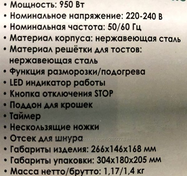 Подробное описание: Тостер электрический из нержавеющей стали. Супер прибор за недорогую цену.