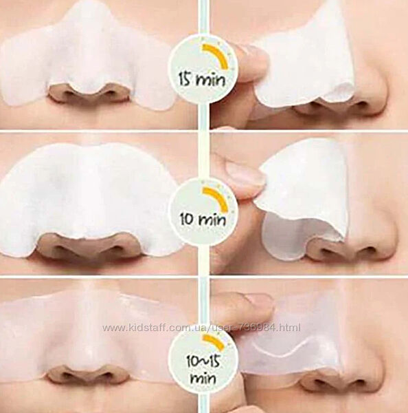Спосіб застосування: по черзі поміщайте на ніс кожен із патчів, відповідно до їх номера на упаковці. Тримайте по 10-15 хвилин, потім видаляйте. Залишки рідини після останнього стікера не змивайте, а утріть у шкіру.