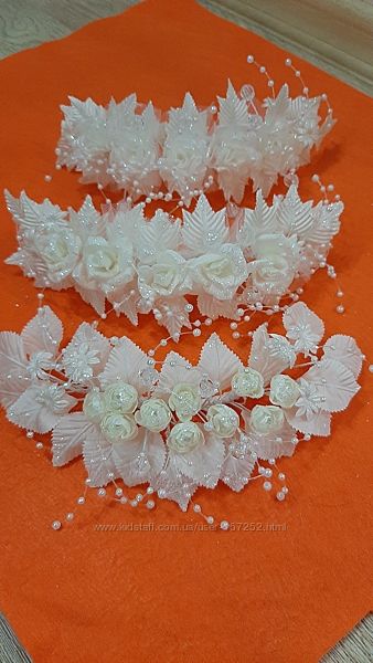 Милые свадебные веточки-тиары, для украшения причёски невесты. НОВЫЕ!!!Ширина 6-7см, есть белые ( фото 1-2) и айвори( фото 3-4)