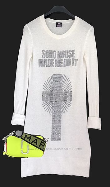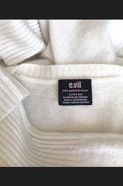 Белое ♥️♥️♥️ кашемировое платье туника из 100 кашемира E.VIL, США.E.vil – это стильная и ироничная марка, которая выпускает вещи с очень узнаваемым почерком. На них выложены кристаллами смешные надписи и приметы американского духа .