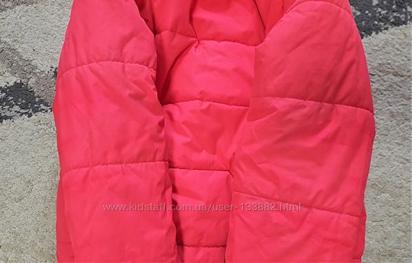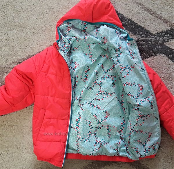 Сама курточка очень хорошая, качество шикарное, можно носить на две стороны, носили толко на розовую сторону, есть потерточти на рукавах на этой стороне и низ розовый тоже не чистий, берюзовую не носили, как новая.Длина - 55см. ПОГ-45см. рукав- 53см , от шеи -63см