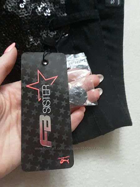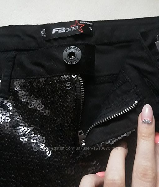 Продам новые сияющие женские брюки/штаны/джинсы в пайетках марки FB Sister от New Yorker. Куплены во Франции в магазине New Yorker, с фирменными ярлыками и бирками. Размер - S. Модель - слим. Брючки черного цвета, очень оригинальные. Спереди обшиты пайетками черного цвета, что придает шикарный блеск и сияние! Посадка средняя, хорошо тянутся. Подойдут на худенькую девочку/девушку среднего или высокого роста. Смотрятся очень стильно и ярко на фигуре.Описание и замеры: