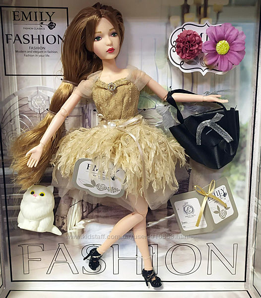 Кукла «Emily» - это прототип настоящей современной принцессы.Ведь она обладает безупречной внешностью и обворожительной белоснежной улыбкой. У куклы длинные волосы, собраны в высокий хвост. Их можно расчесывать и моделировать разные прически.