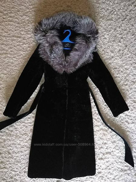 Подробное описание: Шуба шубка мутон чернобурка капюшон XS-S отличная