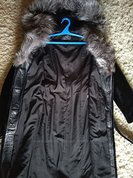 Очень красивая качественная мягусенькая шуба шубканатуральный мутон + большой капюшон кобра из чернобурки