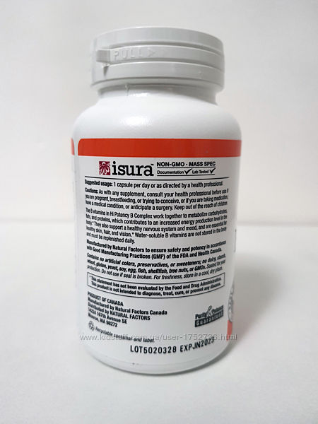 Подробное описание: Комплекс вітамінів групи В Natural Factors Hi Potency B Complex, 90 капсул