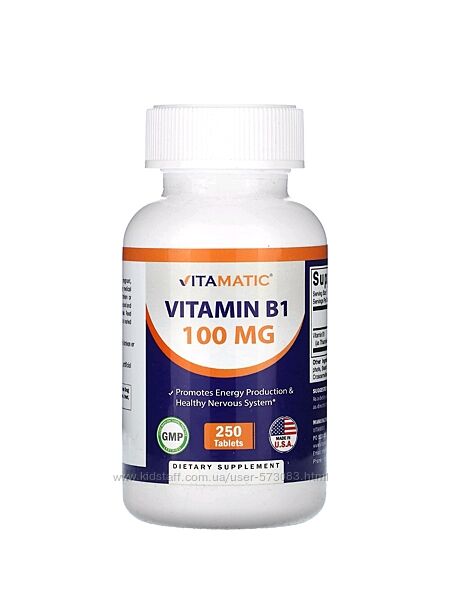 Vitamatic витамин В1 тиамин 100 мг - 250 таблеток / США