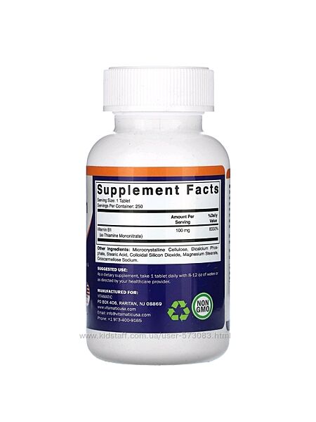 Подробное описание: Vitamatic витамин В1 тиамин 100 мг - 250 таблеток / США