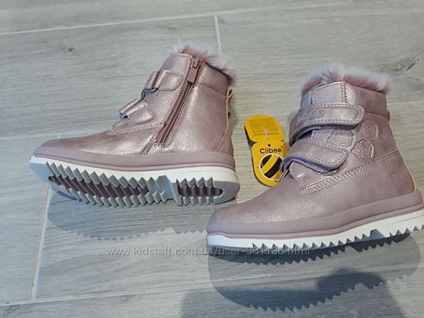 Зимові ботінки Clibee для дівчаток, всередині - густа овчина на 60% натуральна, устілка утеплена. Верх - якісна екошкіра. Заміри витягнутої устілки від краю до краю:26р-17,3 см