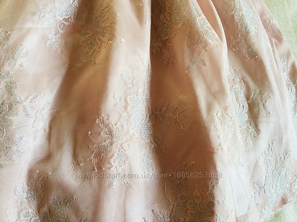 LINDEX. Нежно- розовое серебряное супер- пышное платье. Верх - Нежное ажурное кружево, гипюр с цветочным серебряным тиснением, невероятно переливается. Увы, фото не полностью передает. Пышная фатиновая юбка на многослойных подъюбниках. Как новое. Следов носки НЕТ. длина 65; подмышки 33Другие объявления продавца