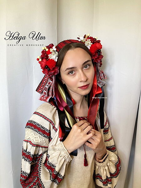 Ручна робота, чудова якість. Гармонійно підібрані квіти, стрічки, вишиті тасьми. Двох однакових просто не буває!