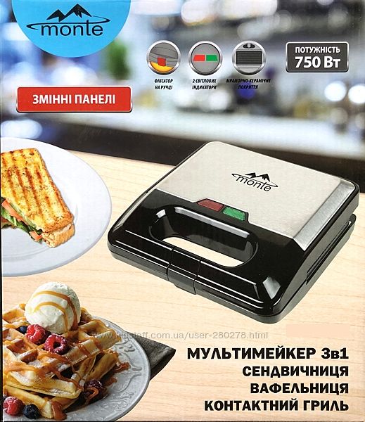 Подробное описание: Мультимейкер 3в1 Вафельница Гриль-Тостер Сендвичница с Мраморной панелью