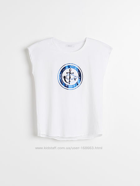 Футболка с 3D рисунком, паетками от Reserved, ХS, Польша