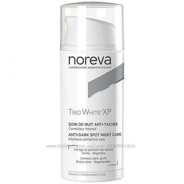 Ночное депигментирующее средство от пятен Норева Трио Вайт Noreva Trio White XP Nuit Intensive Depigment 30млСредство в виде крема, выпускается во флаконе с распылителем, объёмом 30 мл.