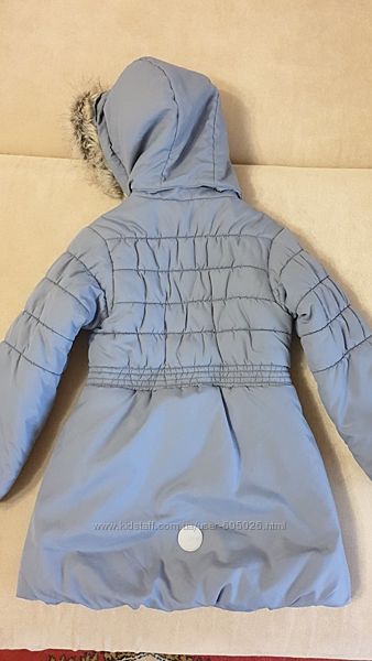 Продам нашу курточку- пальто в идеальном состоянии. Размер 122 , цвет- серый. Водоотталкивающий, ветронепроницаемый, грязеотталкивающий материал, очень легкая и удобная в носке. Средняя степень утепления.Съемный капюшон, меховая опушка отстегивается.