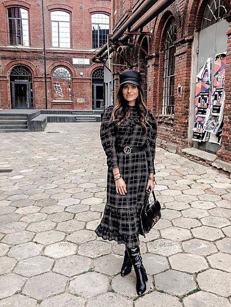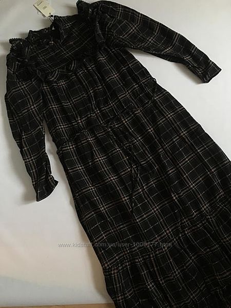 Очень женственное и стильное платье. Красиво садится по фигуре, на спинке застежка на пуговицу, в поясе на завязках. Идет на подкладке. По бирке M/L но реально на размер М.Новое с биркой.