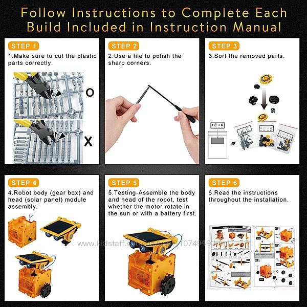 STEM 12 в 1 Образовательные игрушки-роботы на солнечных батареях, с питанием от солнечных батарей и элементов питания 2 в 1, Конструктор, Набор для самостоятельного строительства и обучения науке для детей от 8 лет и старше.Следуйте инструкциям для завершения каждой сборки, включённой в руководство по эксплуатации: Шаг 1 - Убедитесь, что пластмассовые детали вырезаны правильно.