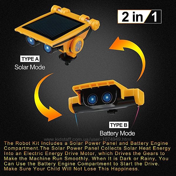 Эти научные игрушки научат детей конструировать робота, использующего солнечную энергию, а также помогут развить ловкость рук, навыки решения проблем, улучшить логическое мышление, уверенность в себе и подчеркнут важность командной работы и сотрудничества.
