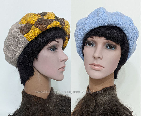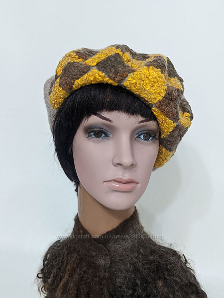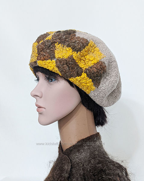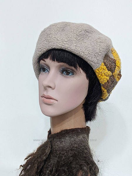 Двосторонній берет Патрісія, 2 в 1. - авторский войлок.