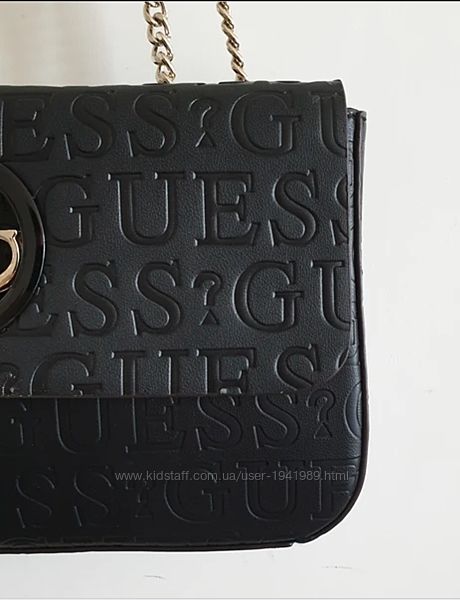 Черная сумка кроссбоди Guess на плечо с тиснением лого