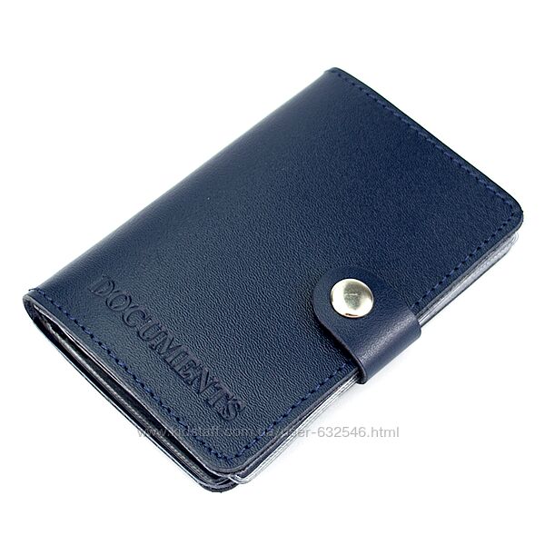 Компактна і надійна синя обкладинка для зберігання всіх пластикових документів: ID паспорта, прав, техпаспорта (в сумі 6 карт). Не займе багато місця в сумці. З внутрішньої сторони 2 прозорих відсіка + 4 знімні прозорі файла-кишеньки. Застібається хлястиком з кнопкою. У виробі використана тільки натуральна глянцева гладенька шкіра Кайзер світло-синього кольору, стійка до подряпин. Розмір 7*10 см. Виготовлена в Україні. Продається в подарунковому крафт-пакеті. В наявності також в чорному червоному, фіолетовому, сірому, нюдовому кольорі.