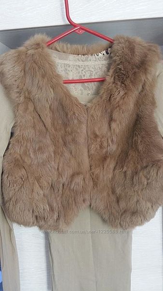 М´яка, ніжна жилетка з натурального хутра кролика Відмінно поєднується з гольфиками, сукнями Хутро у відмінному стані одягалася 3 рази, з нагоди. Підійде на об´єм грудей до 98 см Заміри: Напівобхват грудей 45 см у застібнутому стані (є гачок), можна носити і не застібаючи Довжина по спинці 33 Пройма 25 см