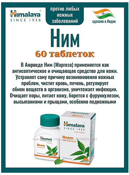 Подробное описание: Ним Хималая Neem Himalaya, 60 таблеток