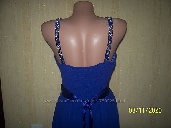 очень красивое шикарное .как пошивом так и цветом яркого василька .вечернее Китайское длинное платье.пишется евро размер 20. идёт на наш размер от 54 по 56 .спереди внутренний лиф .с зади по лифу внутренняя резинка жатка.замеры .длина платья с лямками 147 см. п.объём груди от 48 см и за счёт широкой резинке на спине тянется до 60 см.умножайте на 2.это весь будет объём. теперь полу объём под грудью в спокойном положении от 48 см и тянется до 60 см.дальше свободный покрой до самого низа на любую талию и бёдра.в подарок кладч .цветом под платье.платье в идеальном состоянии.без единой зацепочки и изьяна.ткань верхняя лининг .внутри подкладка полуэстер.выглядеть в нём будете на все 100 %Другие объявления продавца