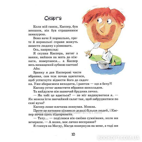 Касперіада Незвичайні пригоди звичайної родиниКумедні смішні історії про звичайного непосидючого хлопчика Каспера та його родину. Завдяки Касперу його родичам ніколи нудьгувати, адже цей бешкетник навіть копирсання у дитячій пісочниці, ліплення сніговиків та щоденний похід до садочка може перетворити на справжню пригоду. Книга із кольоровими ілюстраціями, гарним веселим сюжетом для школярів молодших класів. Найкраще підходить для читання без нудьги на канікулах
