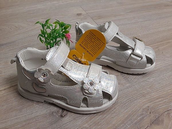 Босоніжки Clibee для дівчаток. Верх - екошкіра з напиленням, устілка - натуральна шкіра, супінатор!Гарно переливаються на сонці, підійдуть на широку ніжку. Дуже легкі.