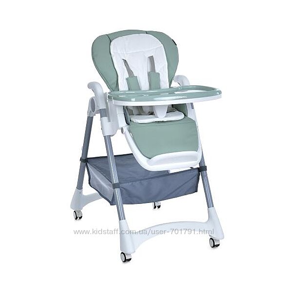 Пятиточечные ремни безопасности надёжно удержат непоседу на месте, а защита от сползания добавит уверенности. Хочется покормить в другом уголке комнаты? Колёсики с фиксаторами помогут без лишних усилий переместить стульчик, куда нужно. Съёмный чехол из экокожи легко моется, а мягкий матрасик обеспечит комфорт для малыша. Внизу находится корзинка для игрушек или вещей.