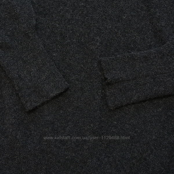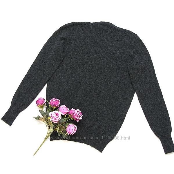Джемпер очень мягкий и теплый, спокойного темно-серого цвета, гладкой вязки, вырез уголком.