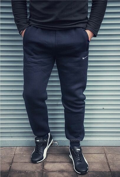Фліс!Теплі чоловічі спортивні штани чорні та темно сині на манжеті Найк