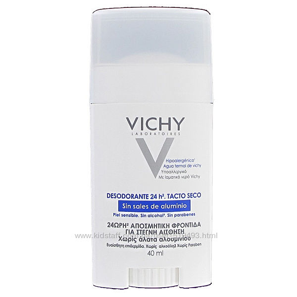 Виши твердый в стике дезодорант сухое касание «24 часа. Для реактивной кожи», без солей алюминия- Vichy, 40 мл Это восхитительный дезодорант, который обеспечивает эффективную защиту и дарит приятное ощущение свежести. Он позволяет регулировать и приостанавливать избыточное потоотделение, но не блокирует естественный процесс. Прекрасно борется с бактериями, вызывающими неприятный запах, предупреждая его появление.Vichy 24H Dry Touch Deodorant Reactive Skin 40ml не содержит солей алюминия. Без парабенов и без спирта, содержит абсорбирующий минерал.