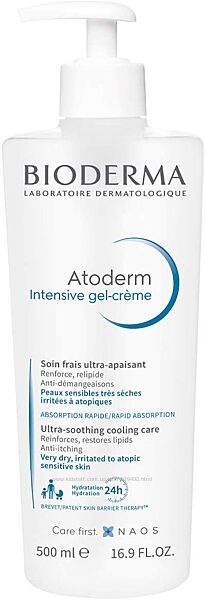 Биодерма Атодерм Интенсив гель-крем эмолиент Bioderma Atoderm Intensive Soothing Gel-Creme в объеме 500млКрем-гель Bioderma Atoderm Intensive Ultra-Soothing Fresh Care Крем-гель - це протисвербіжний живильний догляд, у надлегкій та свіжій текстурі, що полегшує його нанесення та засвоєння шкірою в цих умовах.Дійсно, спека та / або відвищена вологість можуть зробити щоденне багате догляд неприємним для сухої шкіри, схильної до атопії. Це засіб вибору в таких умовах.