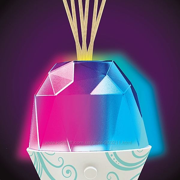 Рекомендуемый возраст от 8 лет. Смешивай четыре аромата, чтобы создать уникальную парфюмерную композицию для своей комнаты. Нажав на кнопку лампа будет переливаться разными цветами. Ароматы ванили, лимона, лаванды и жасмина. Необходимы 2 батарейки "AAA".