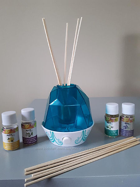 В наборе: лампа, 12 палочек из ратана, 4 бутылочки с ароматами по 10мл, буклет с комбинациями ароматов.