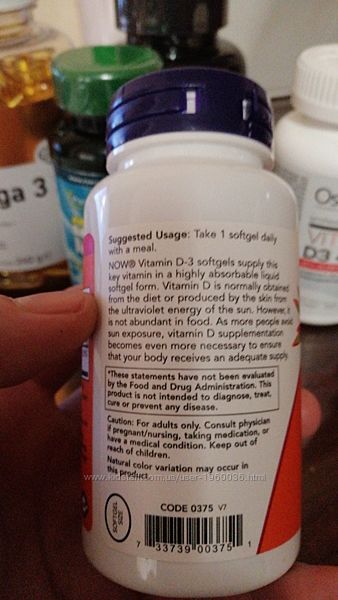 Подробное описание: Витамин D-3, Now Foods, 1000 МЕ, 360кап
