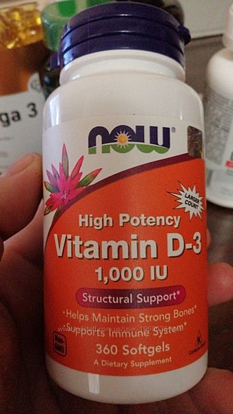 Витамин D-3, Now Foods, 1000 МЕ, 360кап