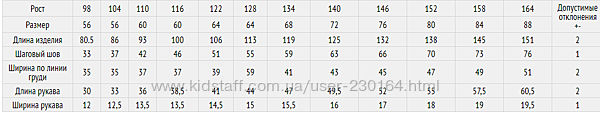 | Рост | 92 см, 98 см, 104 см, 110 см, 116 см, 122 см, 128 см, 134 см, 140 см, 146 см, 152 см, 158 см, 164 см |