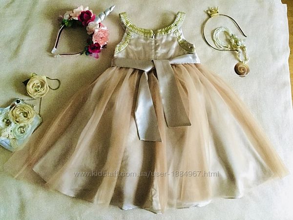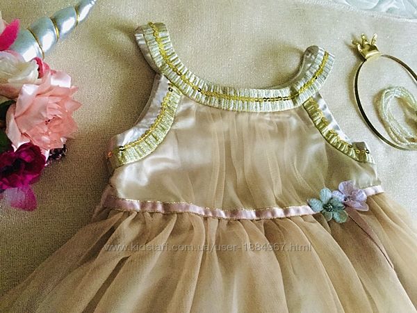 MONSOON. Дорогая Коллекция. Золотое. Супер- пышное. Верх - расшит золотыми пайетками. Потрясающе переливаются. Низ- супер - пышная многослойная фатиновая юбка на золотой атласной подкладке. На поясе цветы в 3-D формате. талия затягивается огромный бантом. Состояние идеальноеНовое такое 1650 грн